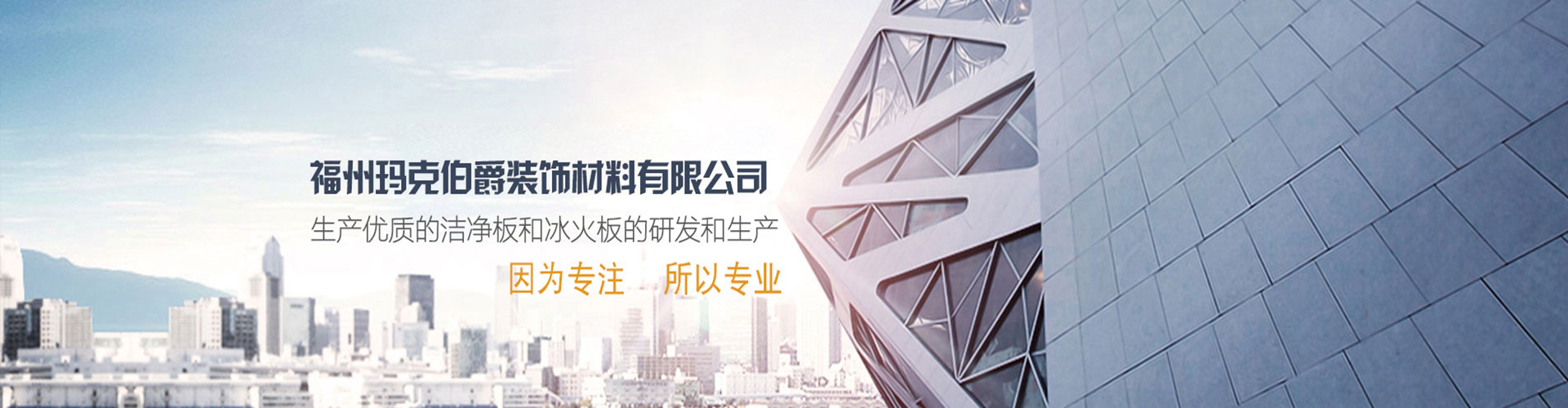 福州瑪克伯爵裝飾材料有限公司成立于2002年,是一家專業(yè)研發(fā)A級(jí)防火材料和生產(chǎn)內(nèi)外墻可替代裝飾材料的公司,主要價(jià)格生產(chǎn)各類工程裝飾用品:冰火板、醫(yī)用抗菌板、保溫一體板、隧道板等,產(chǎn)品具有防火防水、綠色環(huán)保、無(wú)毒、無(wú)煙無(wú)排放、抗菌、A級(jí)防火等多項(xiàng)技術(shù)優(yōu)勢(shì)。